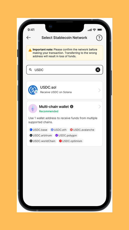 Inside the Multi-Chain Wallet, USDC is now supported on Base, Ethereum, Arbitrum, Polygon, Avalanche, Optimism, WorldChain Networks.